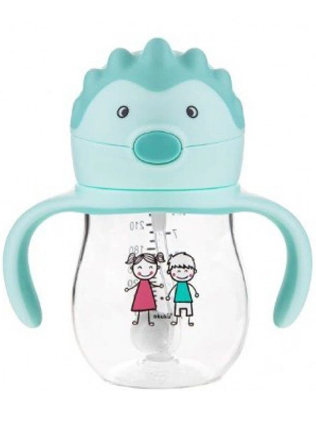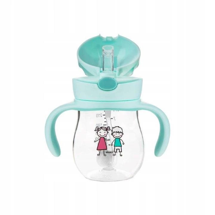Láhev se silikonovým brčkem zakončeným závažím umožňuje pití z jakéhokoli úhlu. Vyrobeno z moderního plastu - TRITAN, zcela bez bisfenolu A (0 % BPA). Tato technologie zajišťuje, že se bidon nepoškrábe ani nezmění barvu. Je vysoce odolný proti poškození a vypadá jako sklo. Dítě pije do poslední kapky. Vaše dítě může pít nakloněním hrnku i vzhůru nohama. Nepostradatelný doma i na cestách. Vzduchotěsné těsnění zabraňuje rozlití nápoje a chrání brčko před znečištěním. Pohodlné otevírání stisknutím tlačítka. Průhlednost a jasné odstupňování umožňují kontrolovat množství kapaliny. Hrnek je možné mýt v myčce nádobí na horní polici (ale bez brčka).