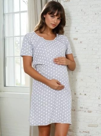 Těhotenství a první dny po porodu jsou obdobím, kdy pro mnoho žen nejde jen o pohodlí, ale také o pocit atraktivity. Stylové nemocniční plášť vypadá opravdu zajímavě. Růžový vzor plameňáka na tmavě modrá těhotenská košile je dokonalou kombinací. Střih noční košile je poměrně volný, ale zároveň není pytlovitý, takže nenarušuje siluetu. Délka ke kolenům vám umožní cítit se pohodlně doma i v nemocnici.