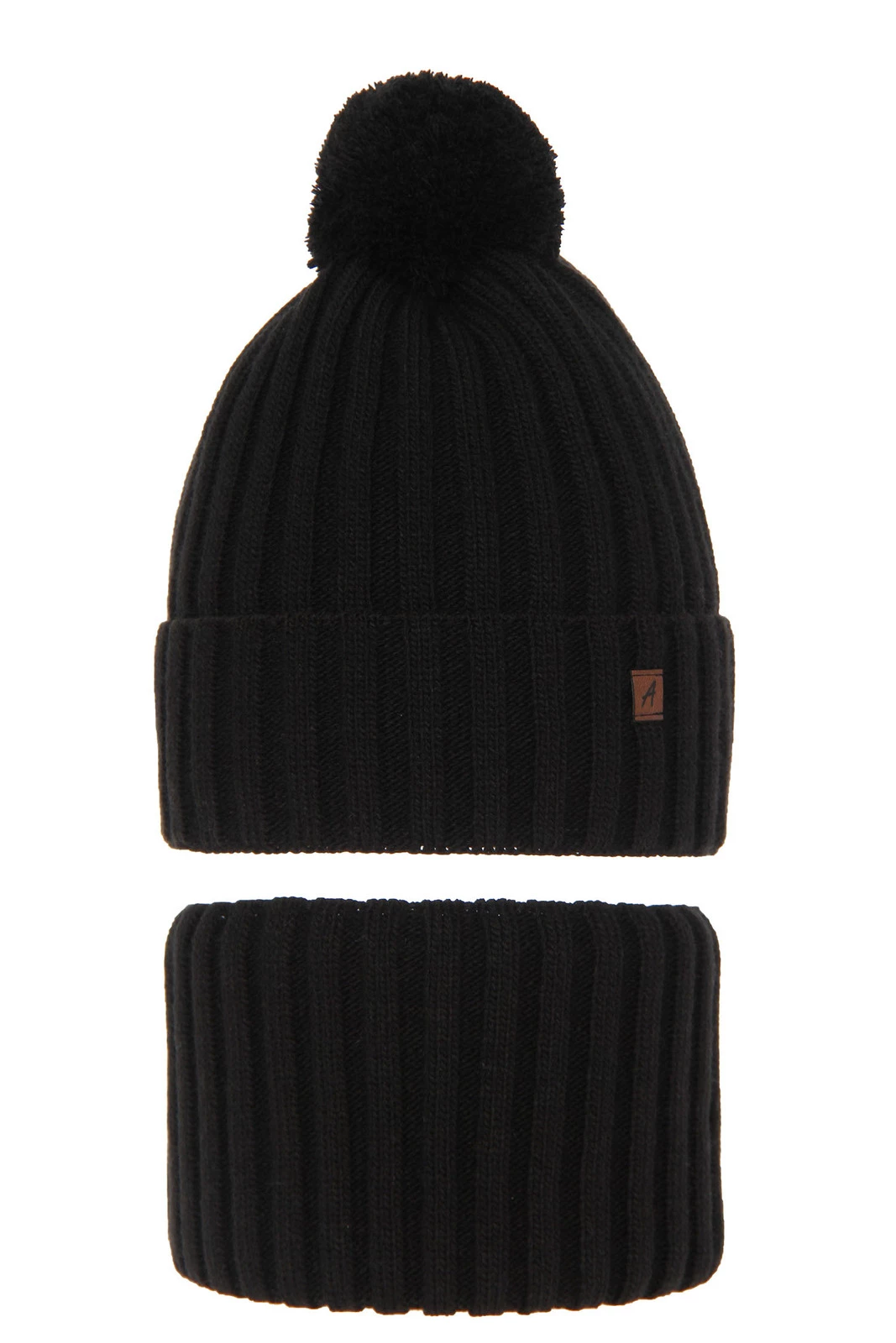 Komplet zimní chlapecký: čepice a tunel černý s bambulí Wiliam