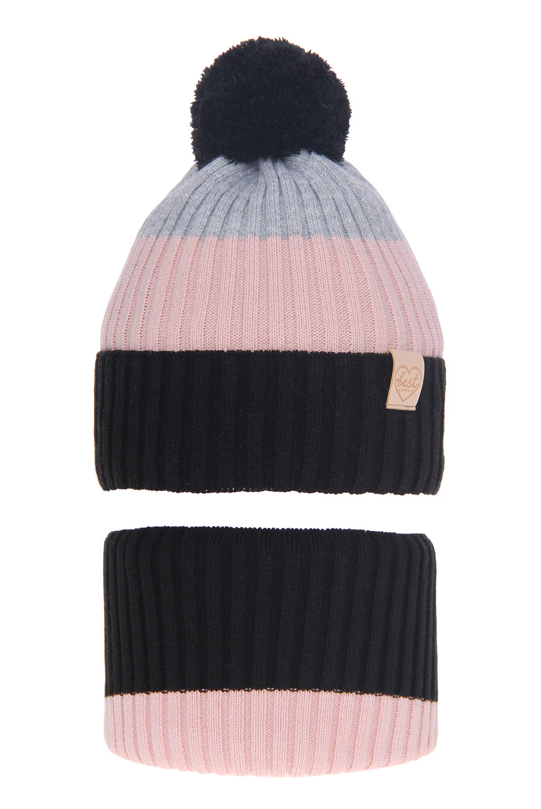 Komplet zimní dívčí: čepice a šála černý s bambulí Indiana
