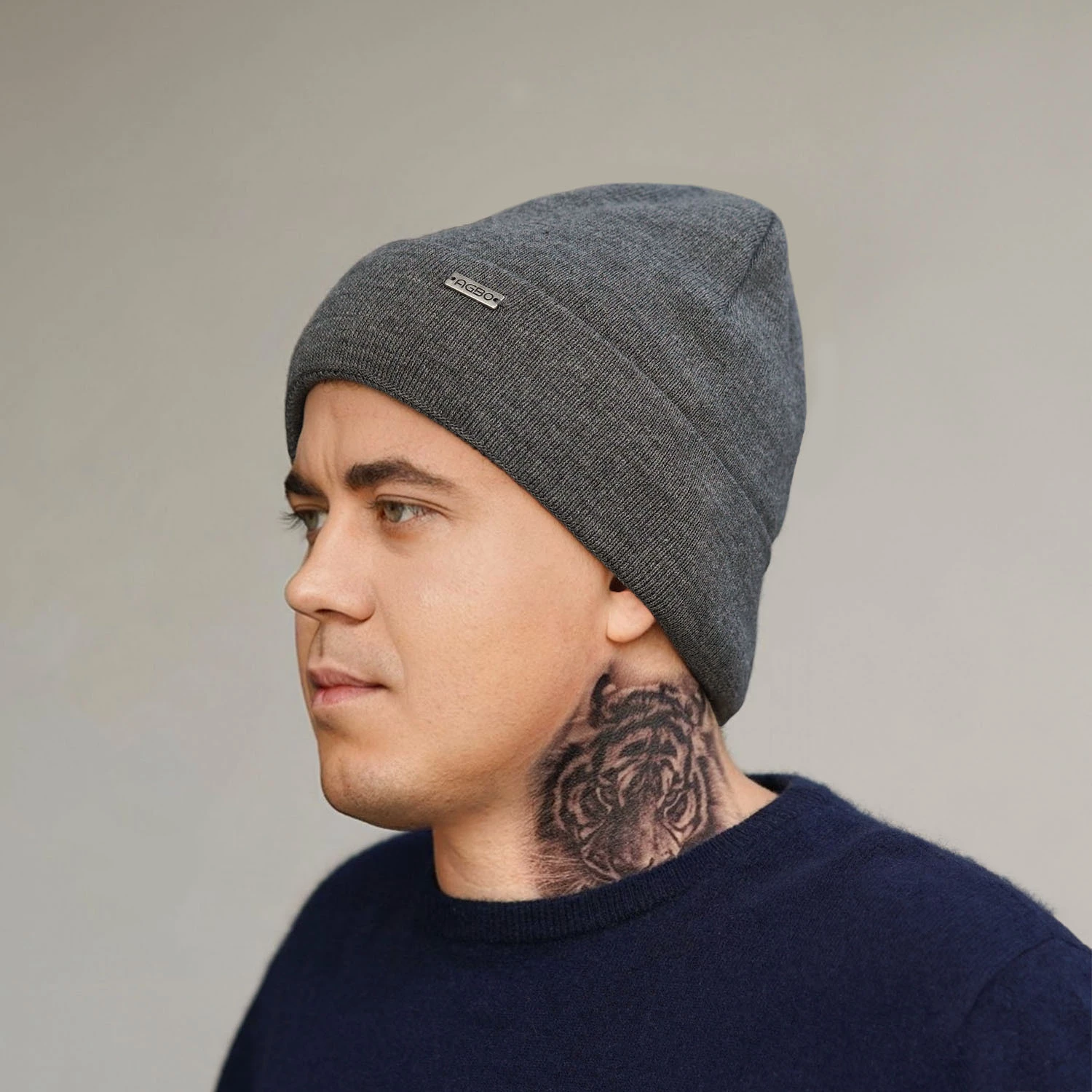 Golden je model, který vyniká svou univerzálností a minimalistickým designem. Hladká struktura úpletu dodává čepici elegantní charakter, a malý kovový štítek představuje subtilní akcent zdůrazňující její moderní styl. Absence bambule zajišťuje, že zimní čepice Golden dokonale ladí jak s neformálními, tak i s formálnějšími outfity.