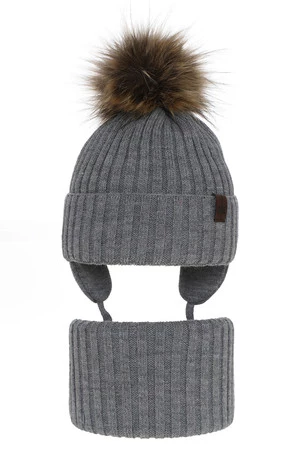 Zimní komplet Puzel vyniká nejen vysokou kvalitou zpracování, ale také moderním designem. Charakteristický žebrovaný vzor dodává celku stylový charakter a velká, nadýchaná bambule z ekokožešiny tvoří efektní zakončení čepice. Malá, ozdobná nášivka je jemným detailem, který dodává kompletu výjimečný charakter.