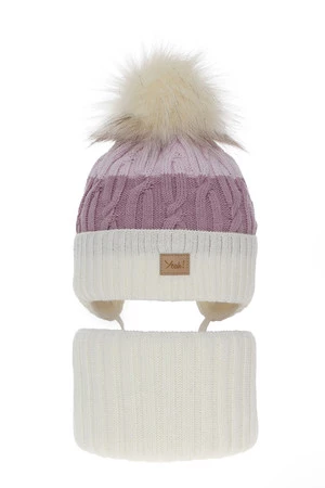 Komplet zimní dívčí: čepice a tunel krémový s bambulí Riviera