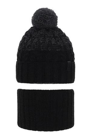 Komplet zimní chlapecký: čepice a tunel černý s bambulí Travis