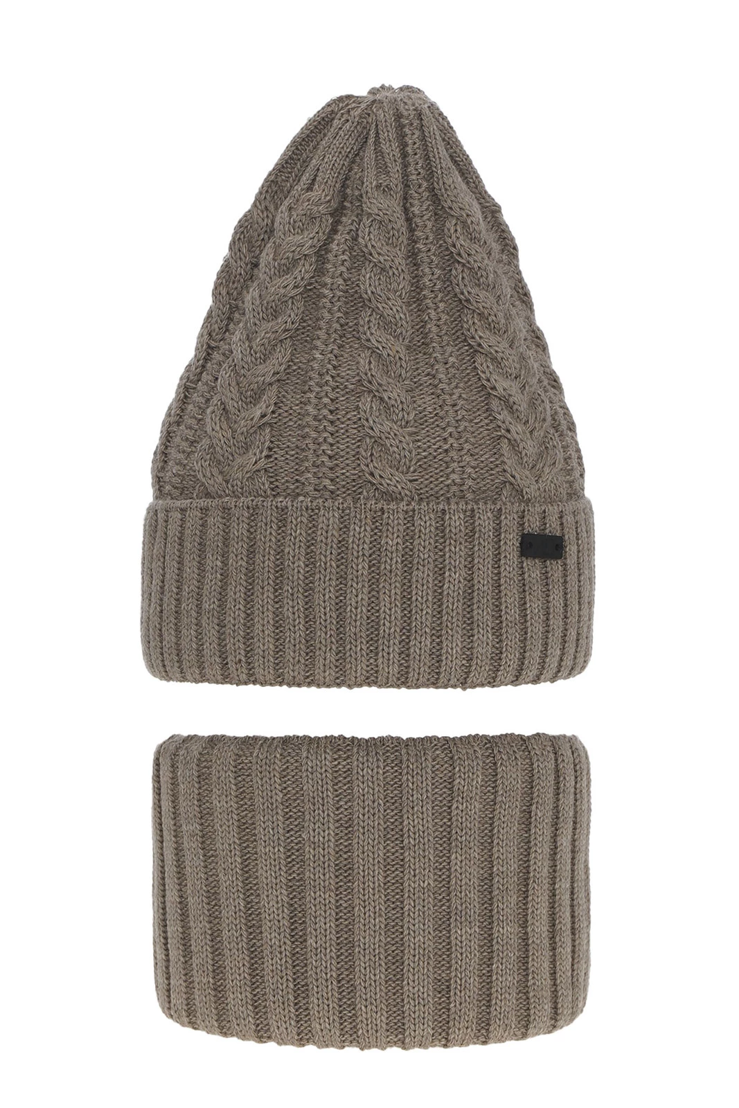 Komplet zimní chlapecký: čepice a tunel béžový Colins