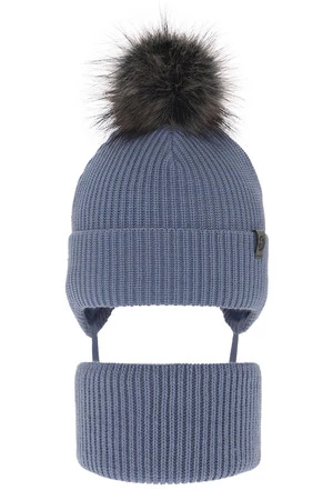 Kompletná zimná detská sada: čiapka a šál modrý s bambuľou Honed