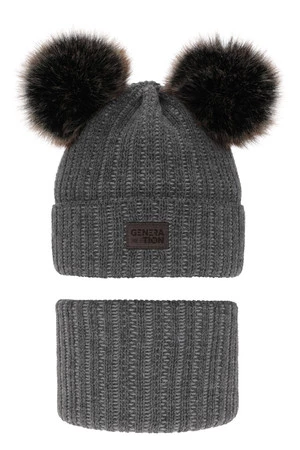 Kompletná zimná detská sada: šedý čiapka a šál s dvoma mašľami Tokio