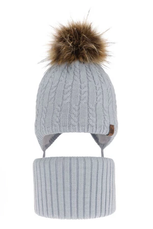 Čiapka s rozkošným, nadýchaným brmbolcom z eko kožušiny priťahuje pohľady a zároveň chráni pred stratou tepla. Elegantný vzor s rebrovaním a vrkočmi dodáva celku módny charakter, vďaka čomu bude vaše dieťa vyzerať štýlovo počas všetkých zimných dobrodružstiev. Jemná nášivka predstavuje diskrétny, ale efektný prvok zdôrazňujúci výnimočnú kvalitu sady.