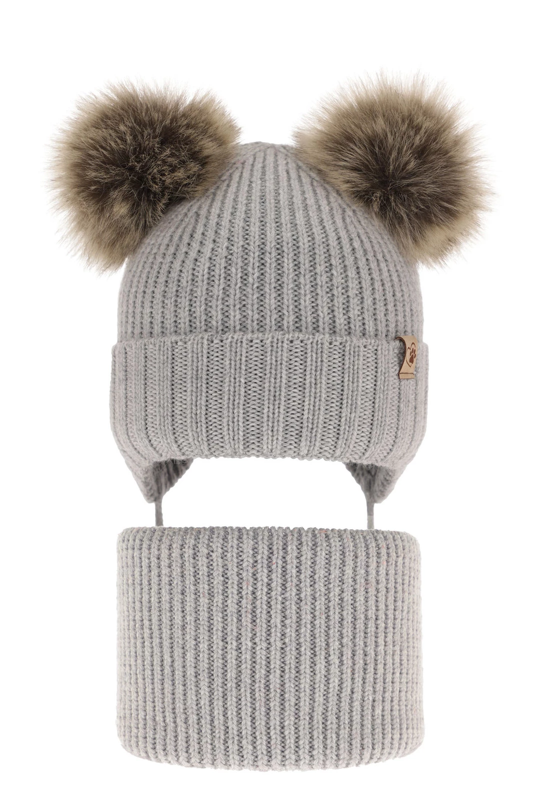 Komplet zimnej dívčí: čepice a tunel šedý 100% extra fine merino vlna Silvia