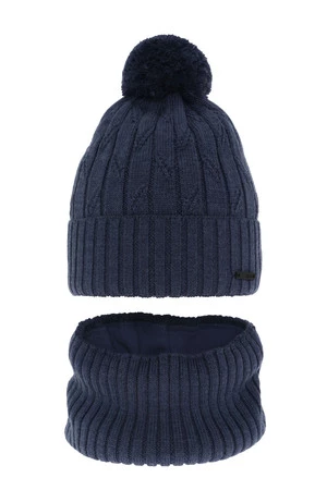 Kompletná zimná detská sada: čiapka a šál modrý s bambuľou merino vlna Talar