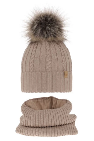 Komplet zimnej dívčej: čiapka a tunel béžový merino vlna Mirabel