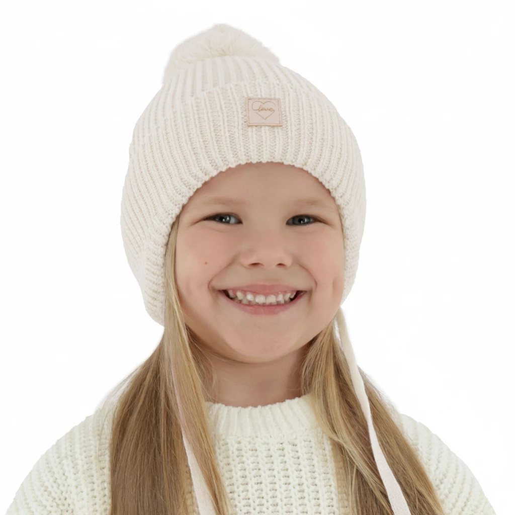 Dievčenská zimná čiapka krémová 100% extra jemná merino vlnená s podšívkou z vlněné Hakkari