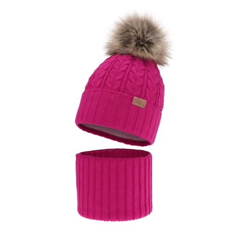 Komplet zimní dívčí: čepice a tunel amarant bambulí Tanzania