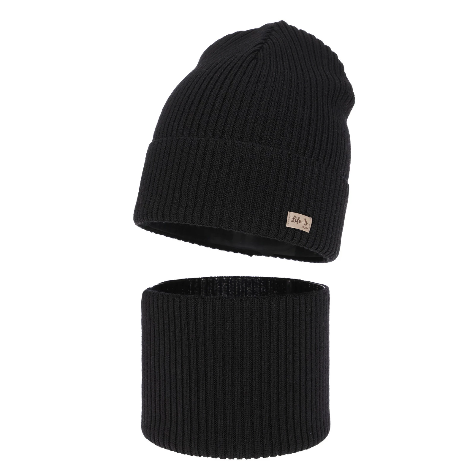 Komplet jesenný/jarný dievčenský čiapka a tunel černý 100% extrafine merino vlna Itra