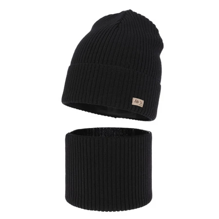 Čiapka s ohybem zdobená elegantní nášivkou dodává celku šik a charakter. Doplňující tunel bez podšívky poskytuje ochranu krku a dekoltu před chladem a zároveň představuje módní doplněk ke každodenním outfitům. Moderní žebrovaný úplet dodává soupravě jedinečný půvab a zvyšuje její pružnost.