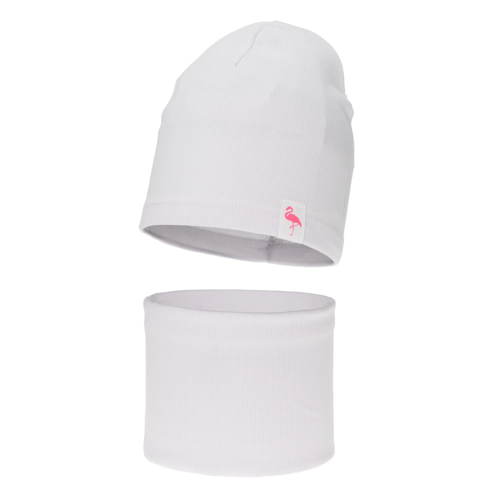 Komplet podzimní, jarní dívčí bavlněná: čepice a tunel, bílý, Rumilla