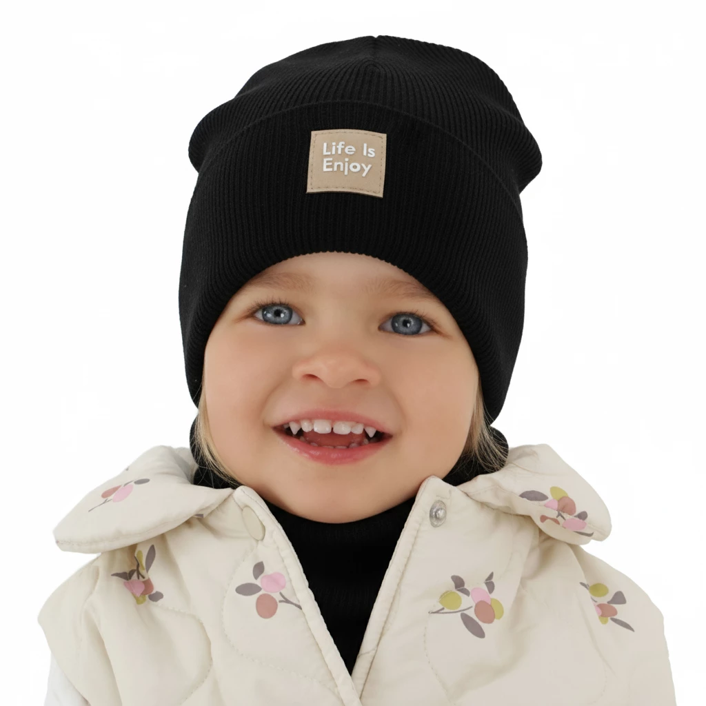 Komplet podzimní, jarní dívčí: čepice a tunel, s bavlnou, černý, Zola
