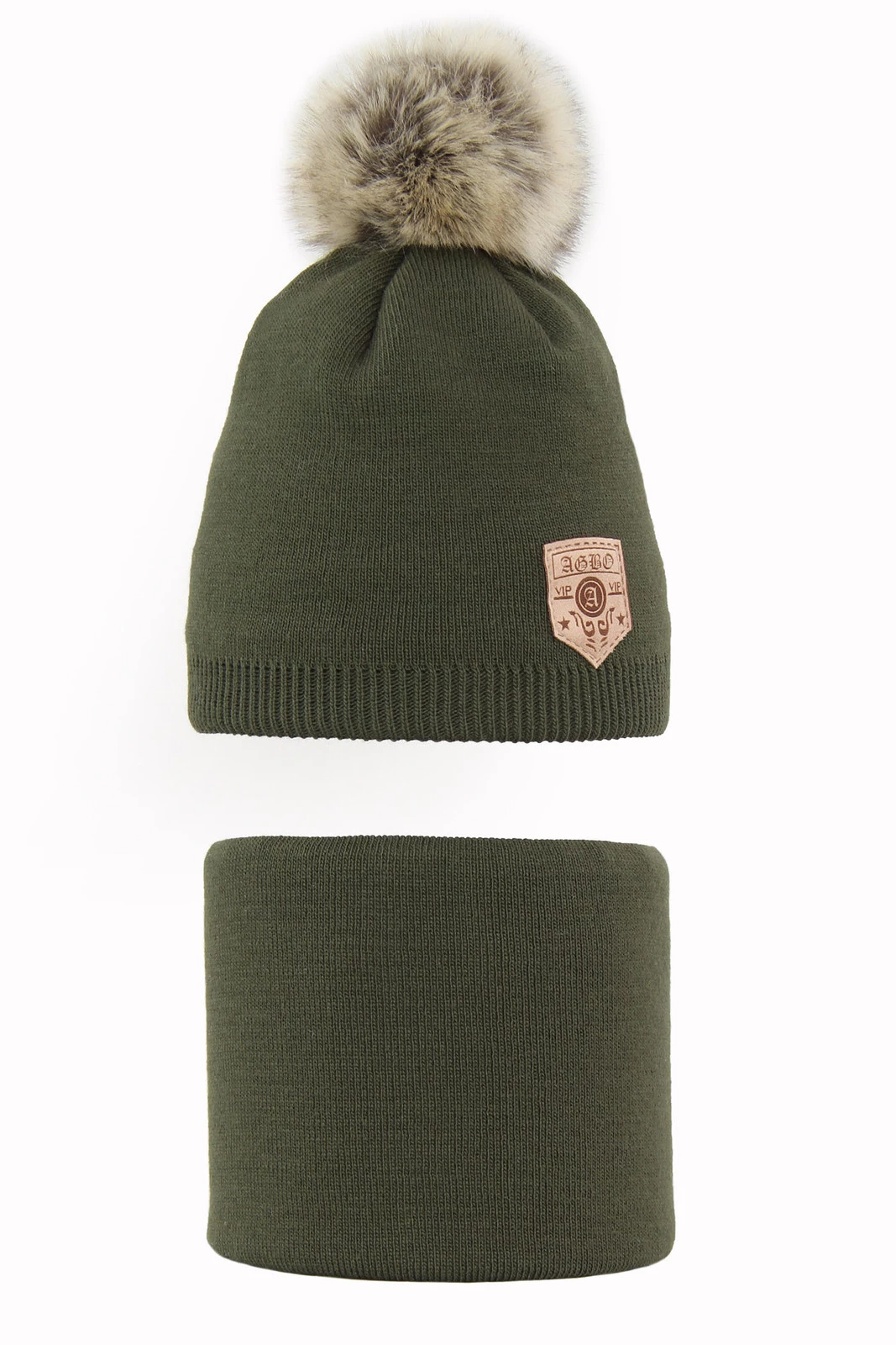 Komplet zimní chlapecký: čepice a tunel khaki Apolin