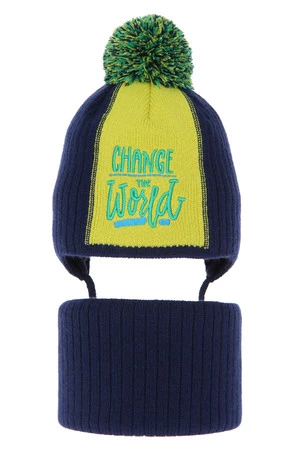 Komplet zimní chlapecký: čepice a tunel tmavě modrý Herb