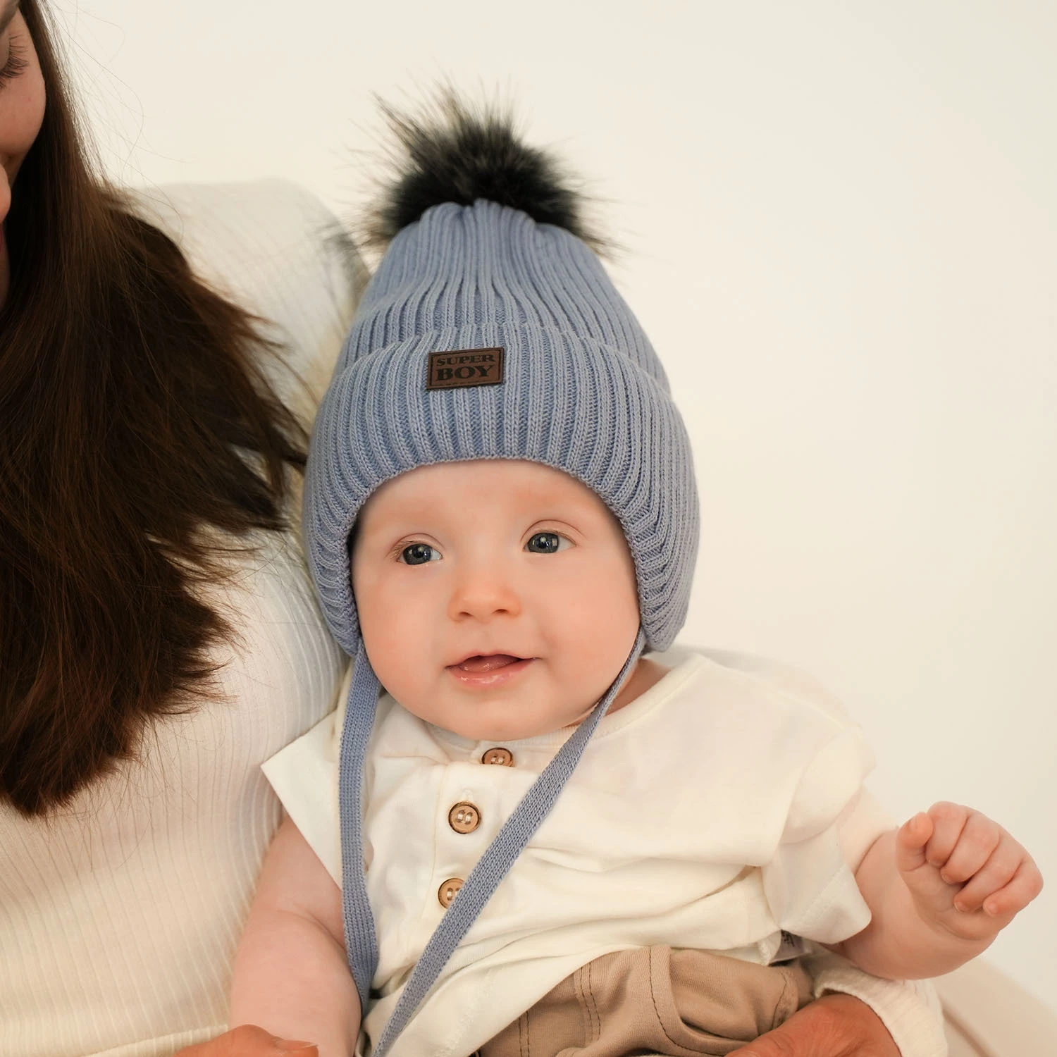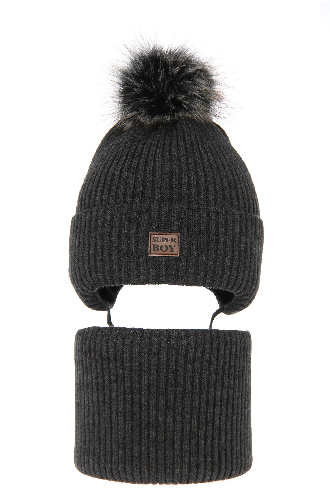 Čepice Denzel vyniká nejen svou funkčností, ale také výjimečným designem. Kožená nášivka s nápisem "super boy" umístěná na přední straně dodává čepici chlapecký charakter, který se líbí jak dětem, tak jejich rodičům. Klasický žebrovaný vzor zajišťuje, že komplet se hodí prakticky ke každému zimnímu outfitu, nezávisle na barevných preferencích.