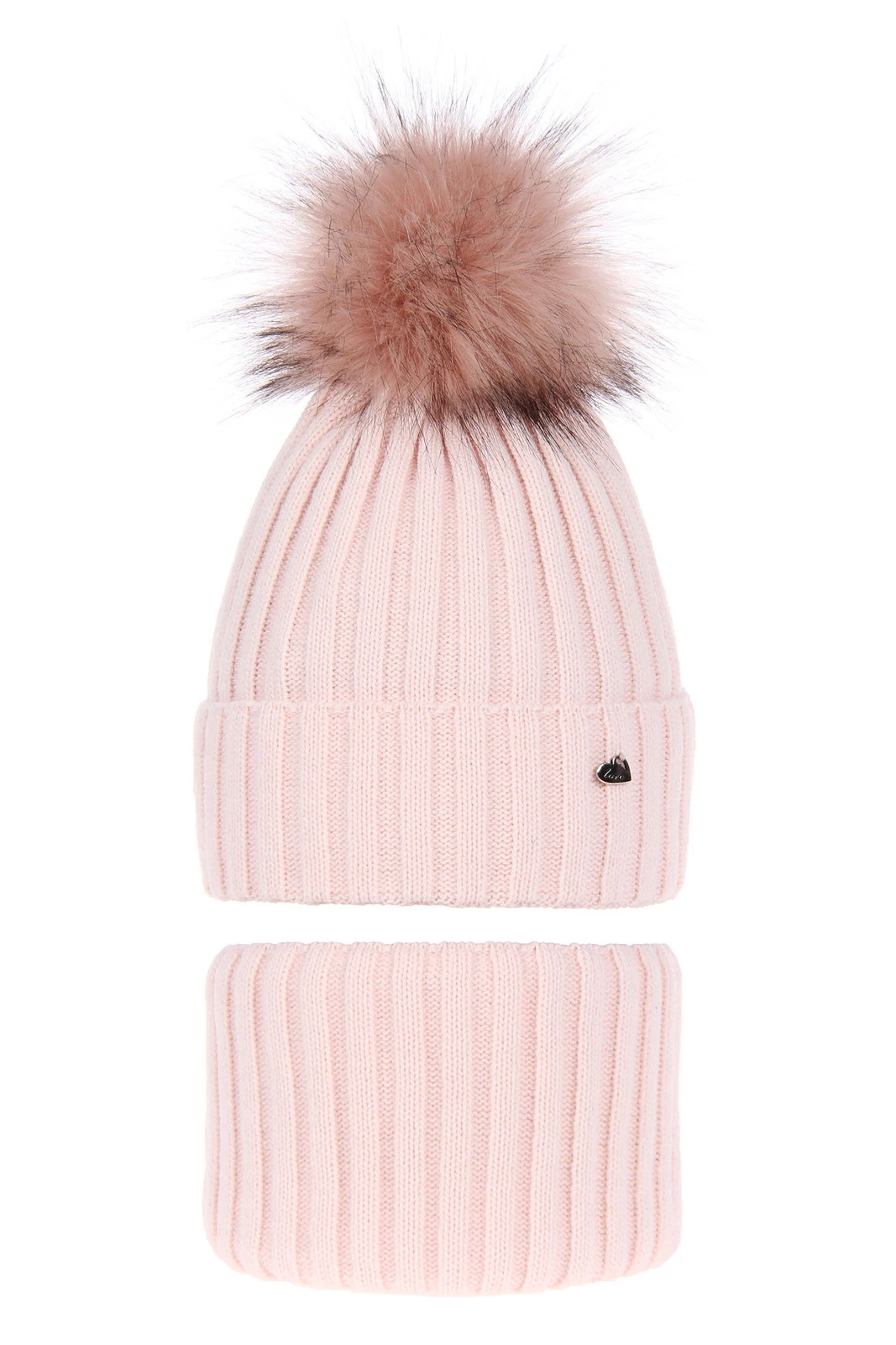 Komplet zimní dívčí: čepice a tunel růžový s bambulí Wilma