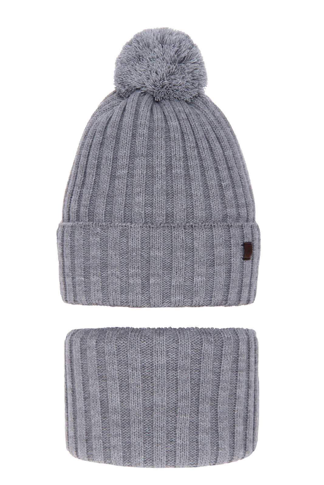 Komplet zimní chlapecký: čepice a tunel šedý s bambulí Wiliam