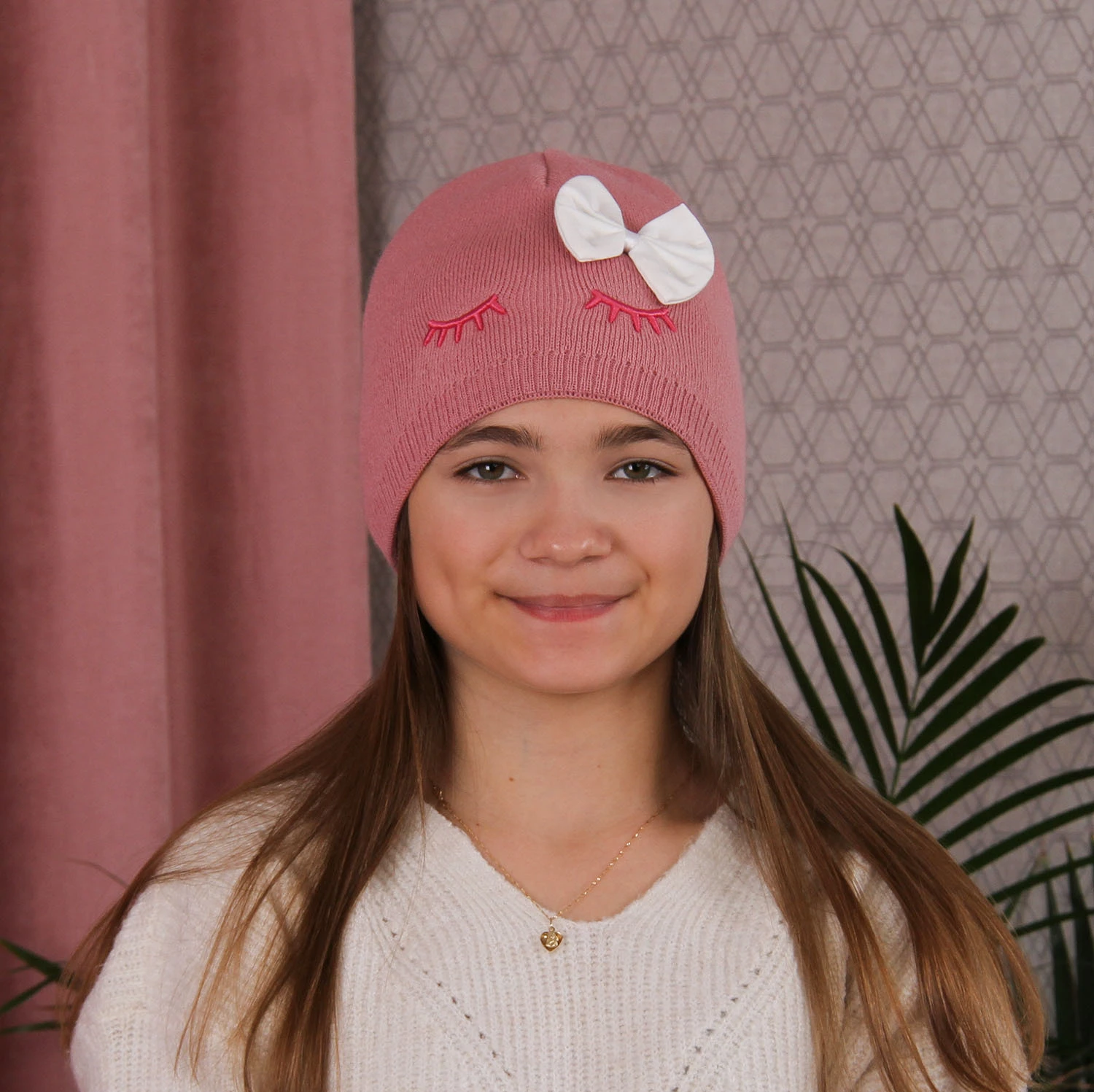 Podzimní čepice Serena je ideální volbou pro větrné, nepříznivé dny. Vyrobená z příjemného na dotek, moderního materiálu, zajišťuje optimální tepelný komfort během procházek a her na čerstvém vzduchu. Propracovaná do nejmenšího detailu čepice vyniká jedinečným designem s vyšívaným motivem zavřených očí a dekorativní mašlí, které jí dodávají neopakovatelný charakter.