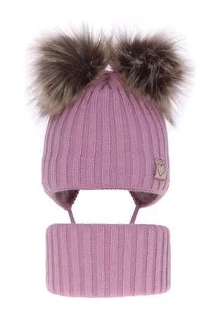 Komplet zimní dívčí: čepice a tunel fialový se dvěma bambulemi Telisa