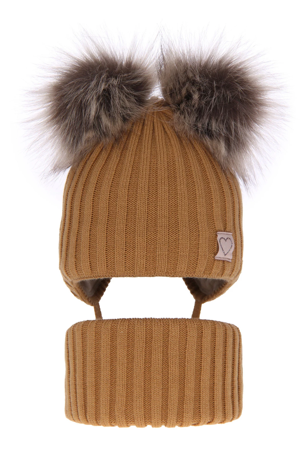 Komplet zimní dívčí: čepice a tunel camel se dvěma bambulemi Telisa