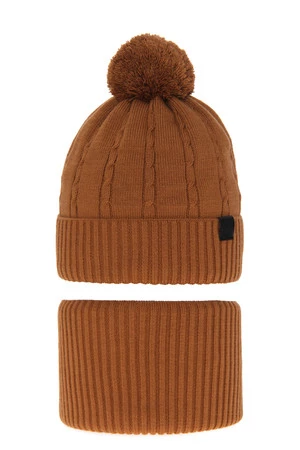 Komplet zimní chlapecký: čepice a tunel hnědý Deny