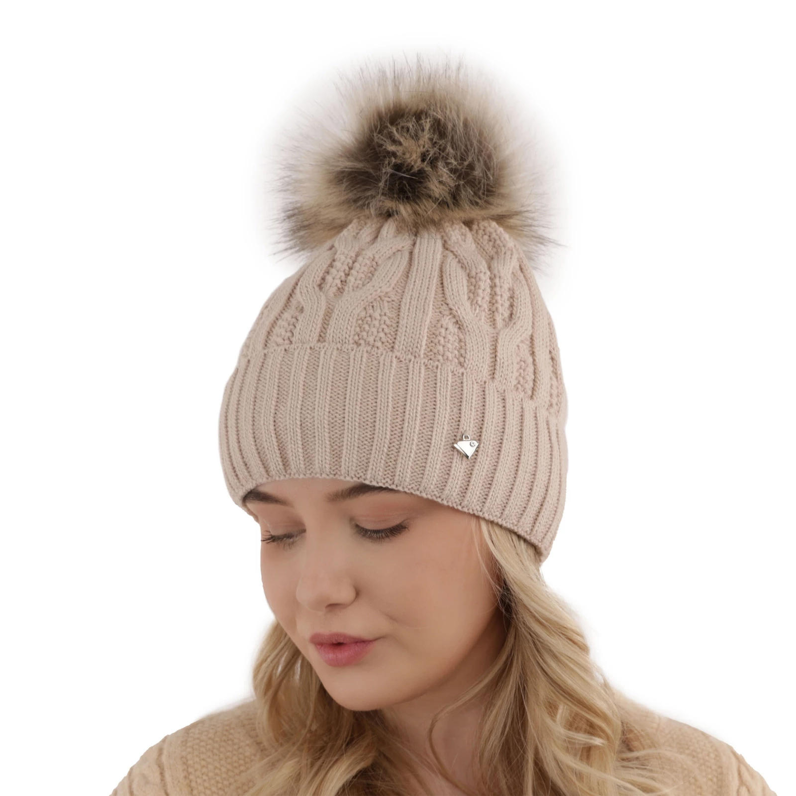 Čepice zimní dámská béžová s bambulí Laona