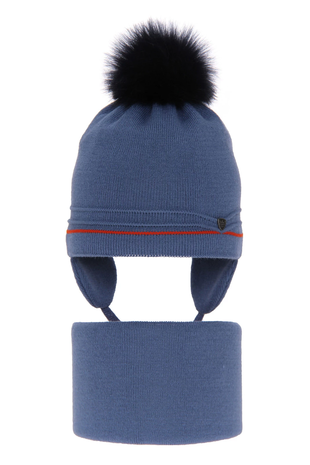 Komplet zimní chlapecký: čepice a tunel modrý s bambulí Burgund