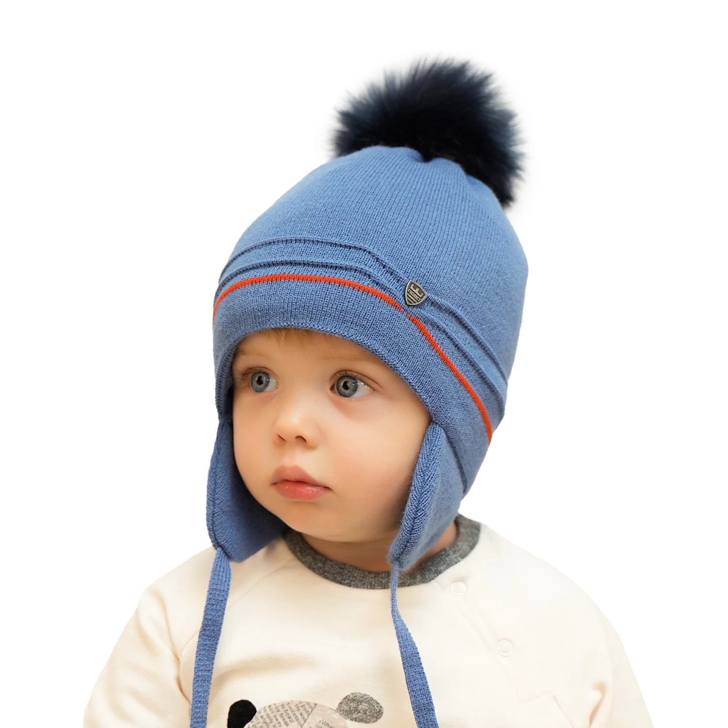 Čepice s bambulí není jen ochranou před chladem, ale také módním doplňkem zimního šatníku vašeho chlapce. Velká, nadýchaná bambule z ekologické kožešiny dodává celku jedinečný charakter a je příjemná na dotek. Ozdobné pruhy kolem čepice a jemná kovová nášivka jsou subtilní detaily, které činí tento model výjimečným.