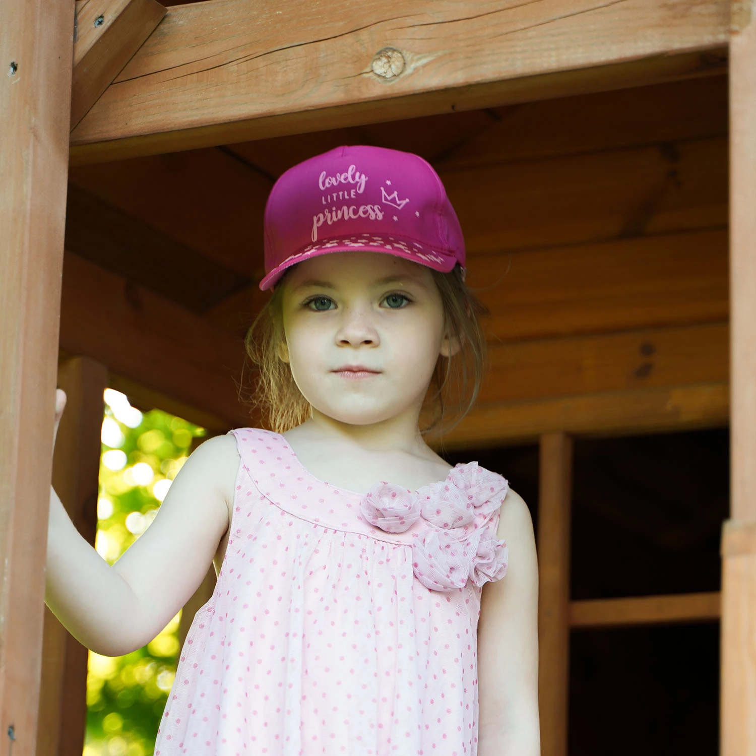 Dívčí kšiltovka se vyznačuje roztomilou aplikací na kšiltu s motivem hvězdiček a půvabným nápisem "lovely little princess", který jí dodává dívčí charakter. Není to jen praktický kus oblečení, ale také módní doplněk, který vaše malá princezna bude s hrdostí nosit během letních procházek, výletů nebo her v parku.