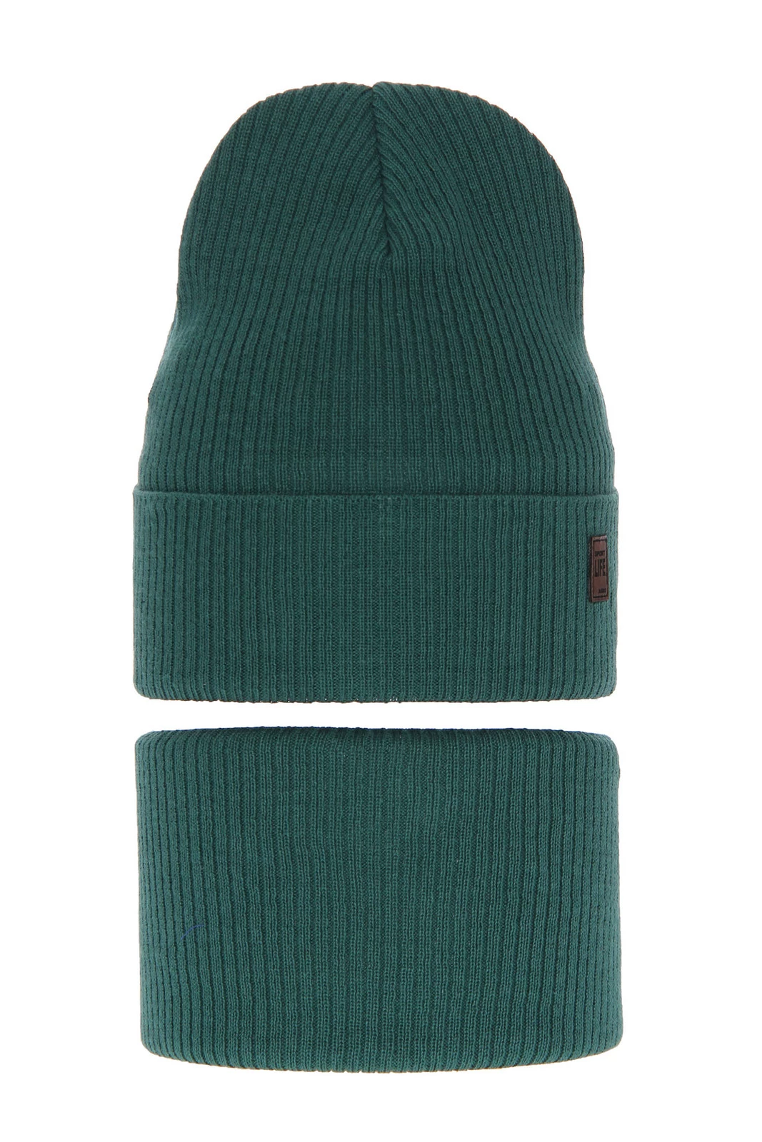 Komplet podzimní/jarní chlapecký: čepice a tunel, s bavlnou, zelený Dragon