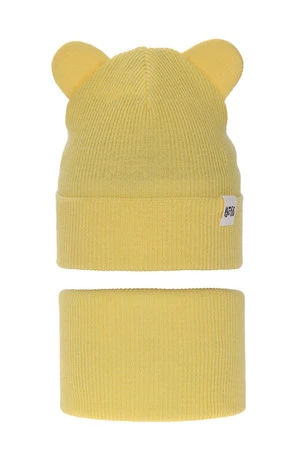Komplet podzimní/jarní dívčí: čepice a tunel, s bavlnou, žlutý Kajra