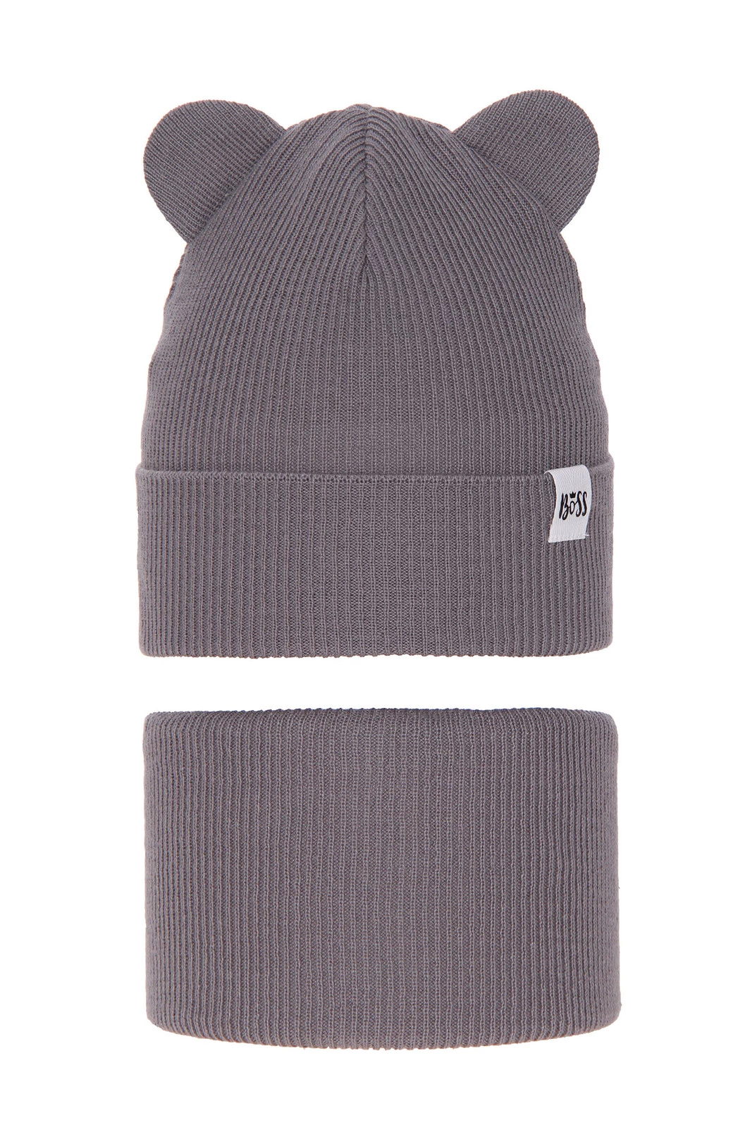 Komplet podzimní/jarní dívčí: čepice a tunel, s bavlnou, šedý Kajra