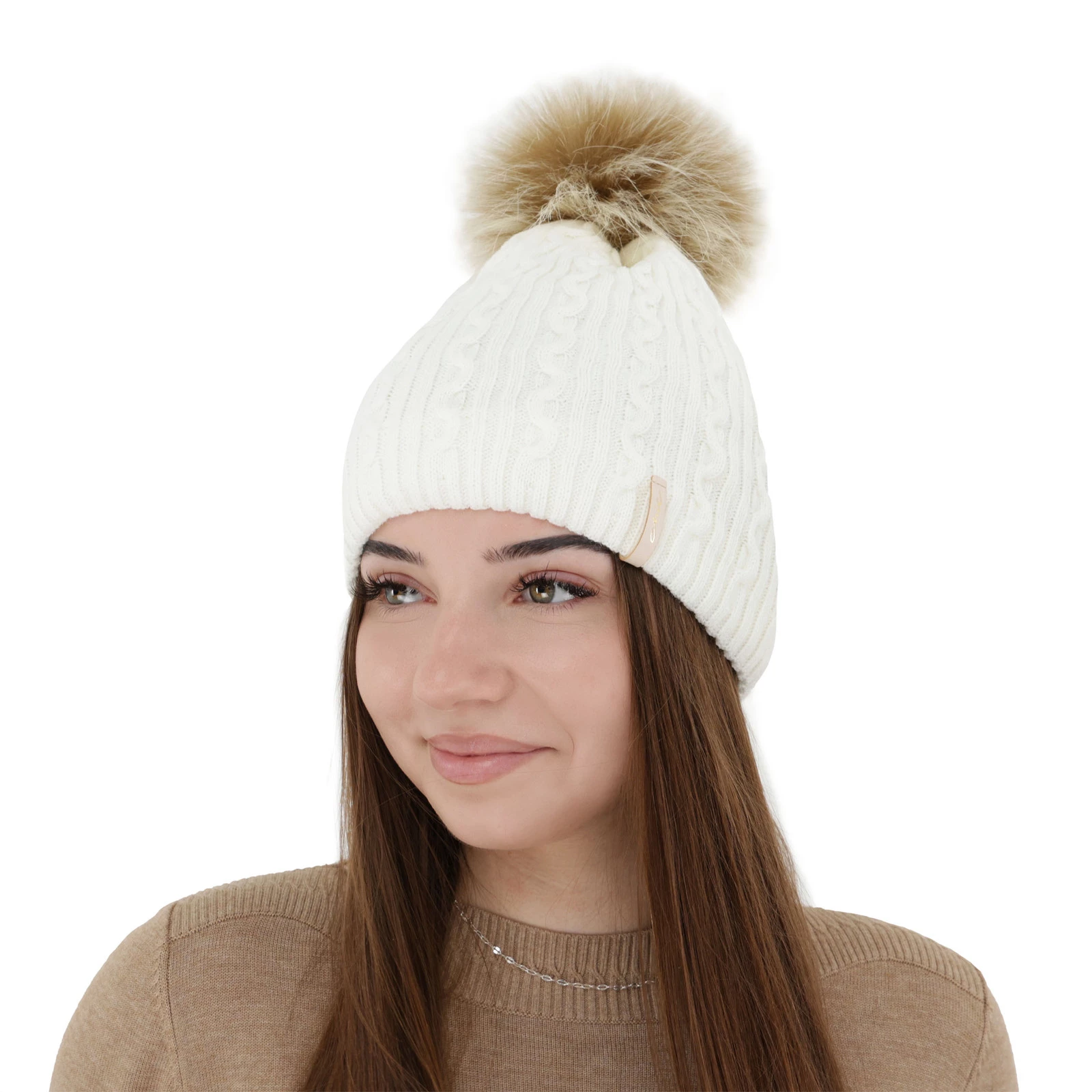 Zimní dámská čepice Xena vynikající jedinečným pletením přitahuje pozornost detaily. Díky pečlivě vybraným copánkovým vzorům a žebrování získává jedinečný charakter, který se dokonale snoubí se zimními outfity. Elegantní bambule z ekokožešiny jí dodává ženský půvab a diskrétní nášivka tvoří jemné zakončení celku.