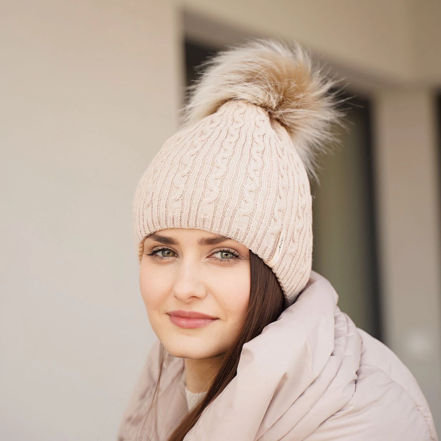 Čepice zimní dámská béžová s bambulí Xena