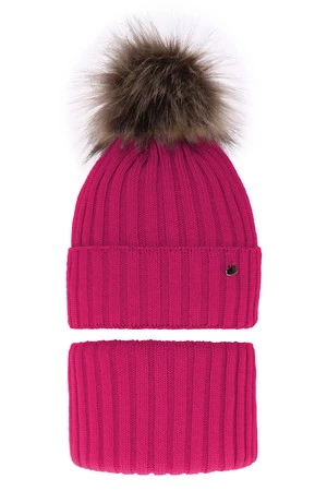 Komplet zimní dívčí: čepice a tunel růžový s bambulí Wilma