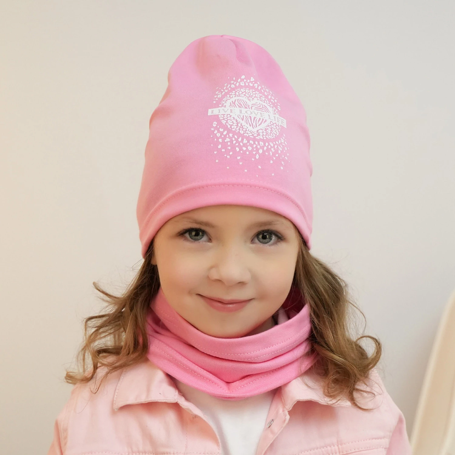 Komplet podzimní/jarní dívčí bavlněná: čepice a tunel krémový Esmeralda
