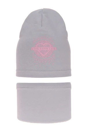 Komplet podzimní/jarní dívčí bavlněná: čepice a tunel šedý Esmeralda
