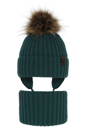 Zimní komplet Puzel vyniká nejen vysokou kvalitou zpracování, ale také moderním designem. Charakteristický žebrovaný vzor dodává celku stylový charakter a velká, nadýchaná bambule z ekokožešiny tvoří efektní zakončení čepice. Malá, ozdobná nášivka je jemným detailem, který dodává kompletu výjimečný charakter.