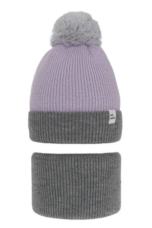 Komplet zimní dívčí: čepice a tunel šedý s bambulí Rosalin