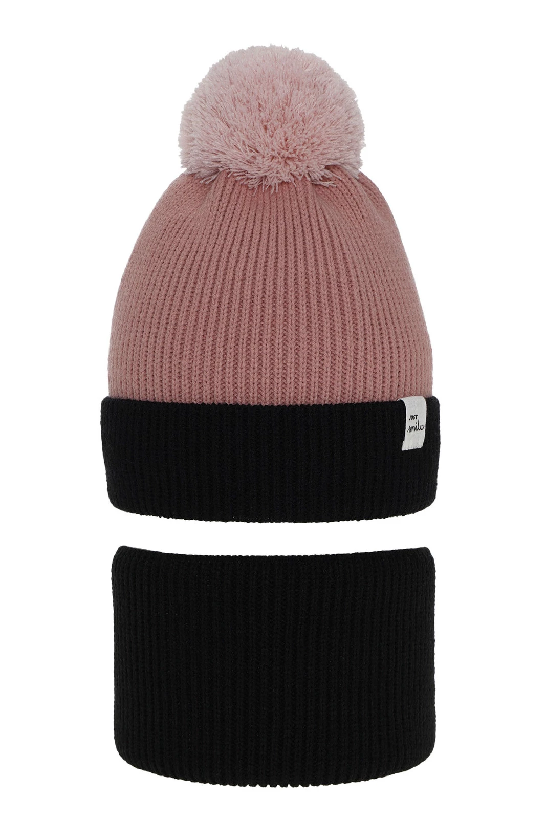 Zimní komplet Rosalin je spojením stylu a funkčnosti. Módní pruhovaný vzor dodává celku jedinečný charakter a roztomilá nášivka s nápisem "just smile" tvoří půvabné zakončení, které určitě potěší každou dívku. Velký, měkký bambulový pompon doplňuje celek a dodává čepici dívčí šarm.