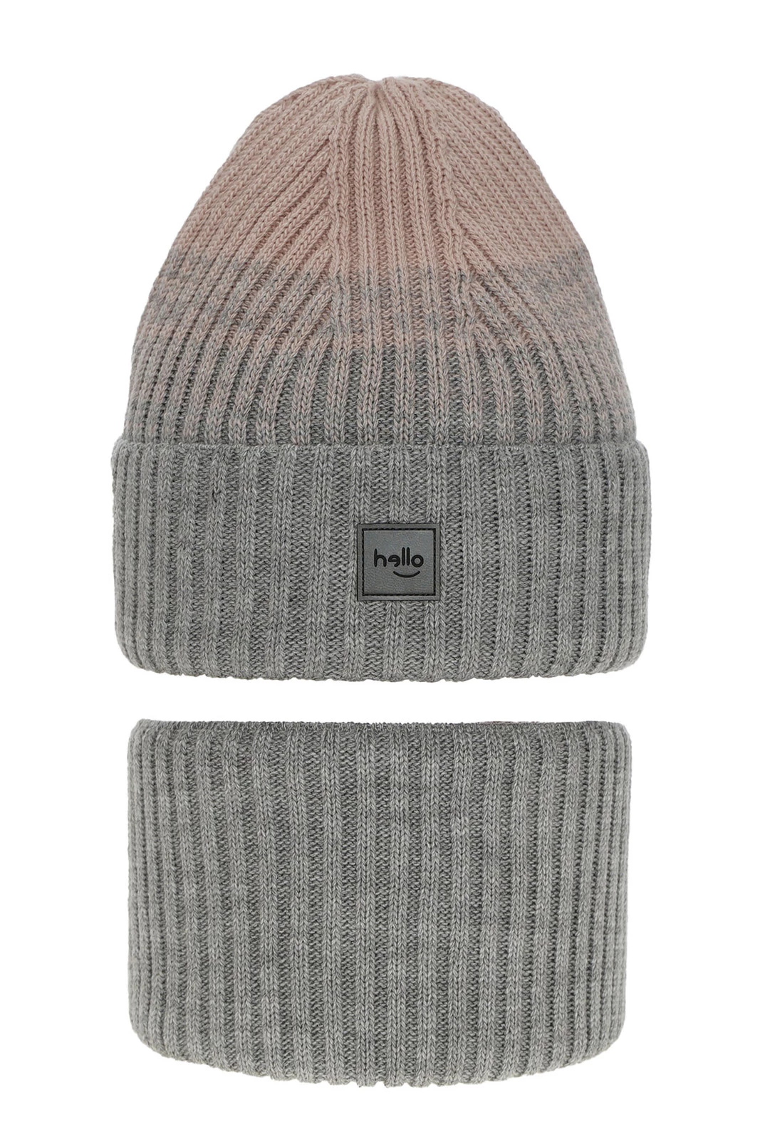 Komplet zimní dívčí: čepice a tunel šedý Tasha