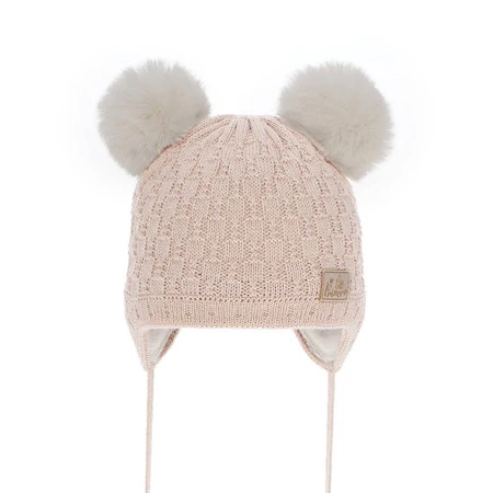 Dívčí zimní čepice béžová s bambulí Emila
