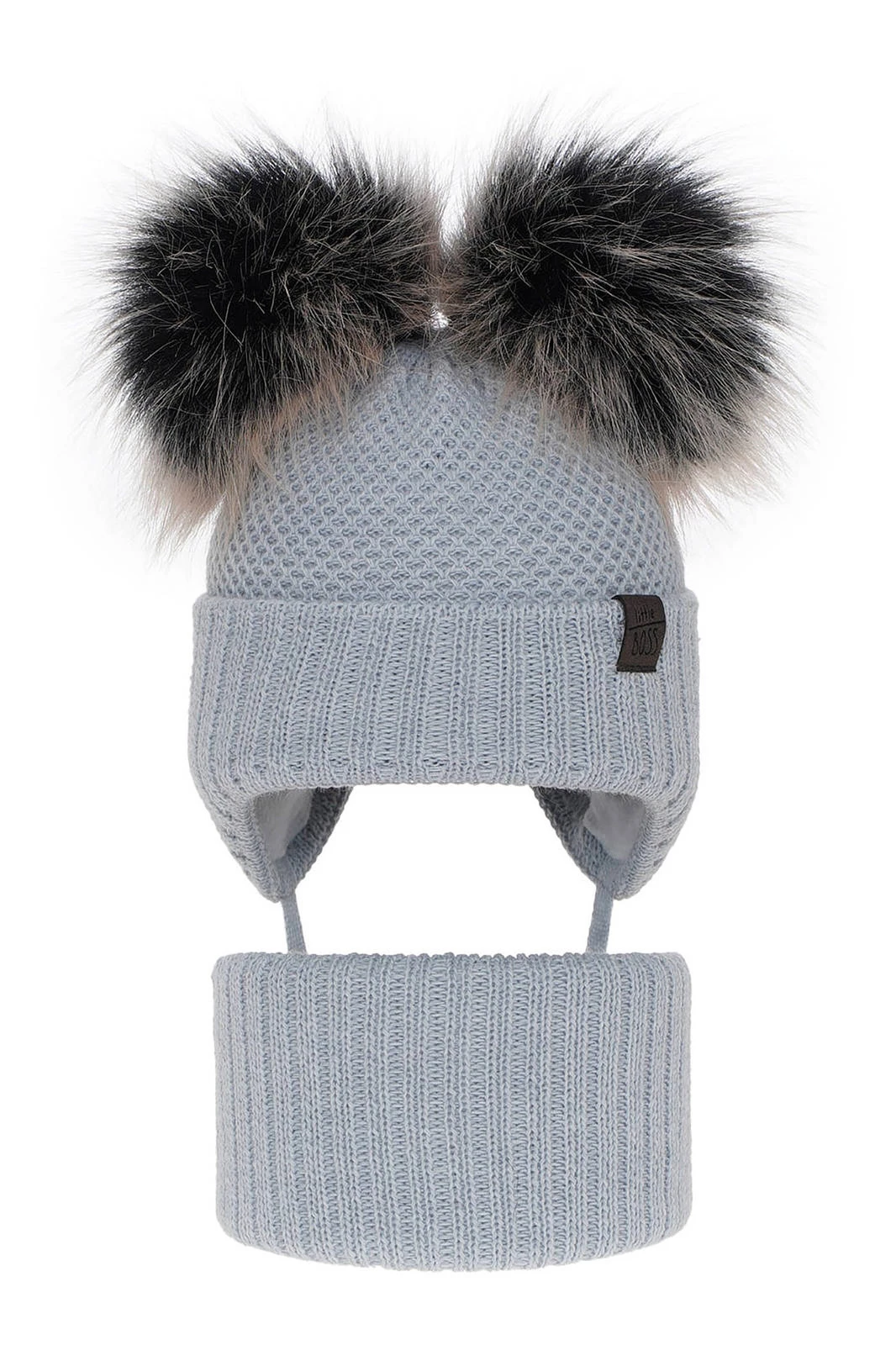 Komplet zimní chlapecký: čepice a tunel světle modrý se dvěma bambulemi Randel
