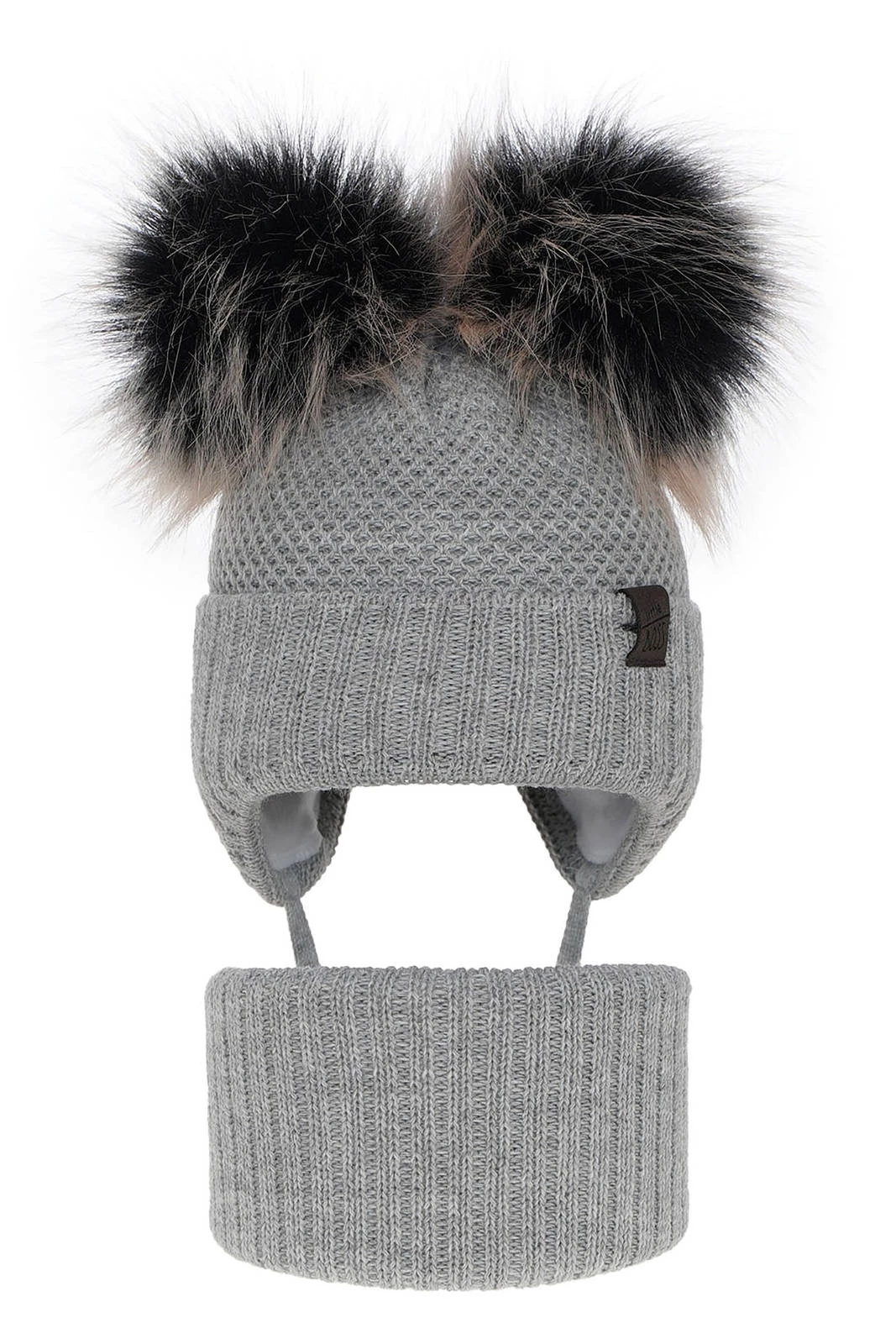 Komplet zimní chlapecký: čepice a tunel šedý se dvěma bambulemi Randel