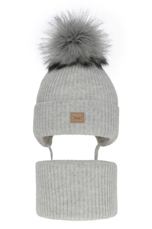 Komplet zimní dívčí: čepice a tunel šedý s bambulí Dilajla